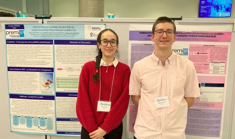 Le projet Réseau SPP vise à réaliser une étude sur les normes, les indicateurs et les besoins de formation en soins palliatifs pédiatriques au Québec. Il est soutenu par le Réseau québécois de recherche en soins palliatifs et de fin de vie que je remercie encore pour cet appui essentiel. Bravo Salma et Mathis pour votre excellent travail très bien synthétisé dans les affiches que vous avez présentées!